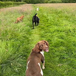 Are you looking for walks for your friendly dog? Would your dog benefit from social interactions with other friendly dogs? We offer group walks for your dog, with a maximum of 5 other friendly and social dogs. Group walks are priced at £14 per hour for one dog. £19 for two dogs. £25 for three dogs. Additional charge of £8 for each additional dog. Dogs participating in group walks must have good recall, good lead walking and no behavioural or reactivity problems. (prices based on geographical location, supplement may be charged depending on distance)